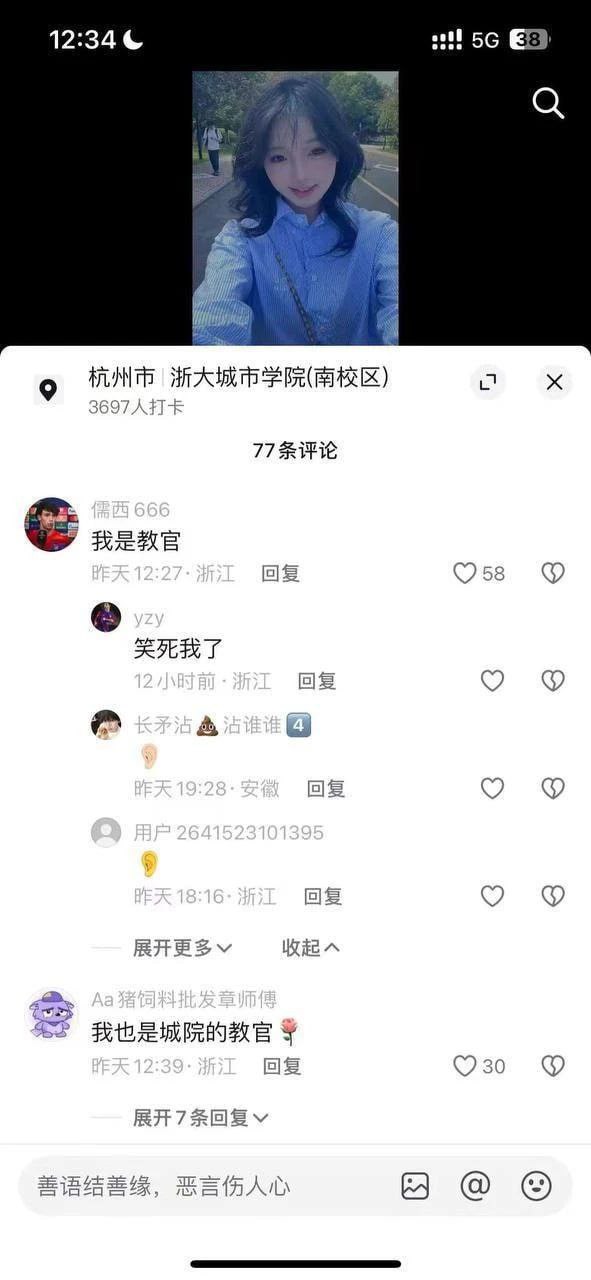 近日网传浙江大学城市学院学生妹和教官约炮,一则视频发到网上,迅速在网络上引起热议,知情者同学也纷纷爆料,爆女主出去约炮是刷舍友的人脸,而且女主还是未成年,导致教官去蹲了几天~刚来就勾引教官约炮,会玩呢