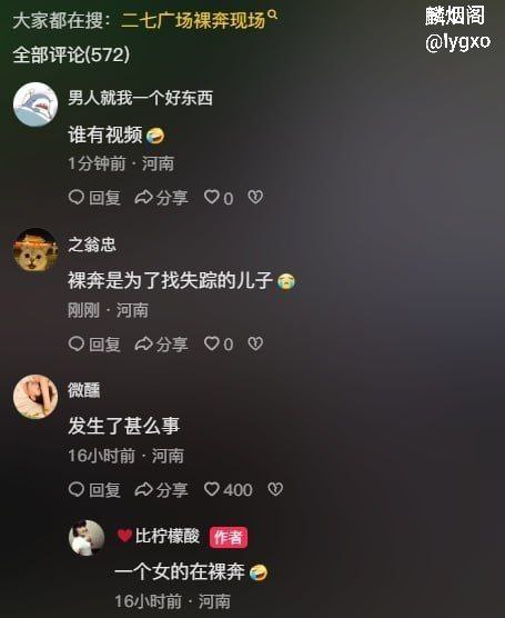 郑州二七广场女子裸奔事件,抖音上聚集了不少的吃瓜群众,视频看上去还是比较模糊的,也有传言说是为了找寻失踪的儿子才这样做的,也有人说是完成主人的任务,但最关键的还是,这么多人居然都没有拍到正面的