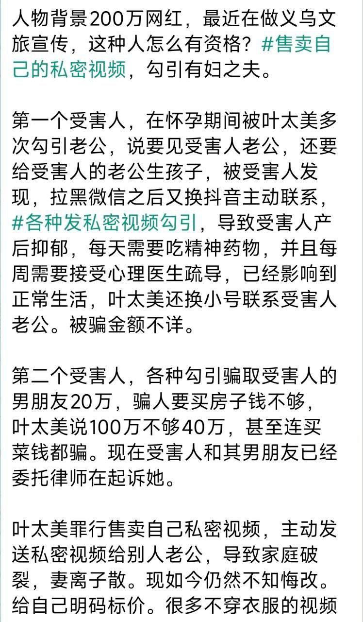 抖音200w粉丝网红 叶太美 知三当三勾引别人老公破坏家庭 出售做爱视频被曝光!
