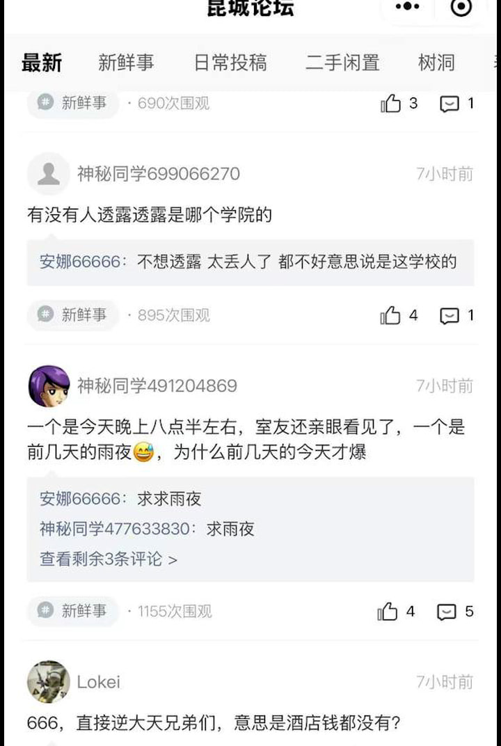 近日,云南昆明城市学院16号和12号休闲区爆出一则惊爆黑料:一对小情侣在校园休闲区沙发上公然进行性行为,引发热议。事件被多位校友偷拍,视频在网络疯传,当事人甚至主动自曝,引发更大争议。视频中,男生用身体或雨伞遮挡,试图掩盖行为,但仍被多角度记录。校友们在坤成论坛热议,戏称“地为床,天为被”,直呼此操作“666”。此事迅速登上网络热搜,成为舆论焦点。