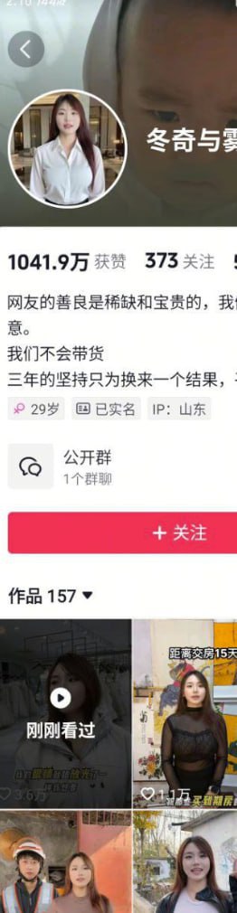 抖音50w粉丝 冬奇与雾凇 被爆玩抖音之前在外网干黄播 原来巨乳妹子是福利姬上岸!