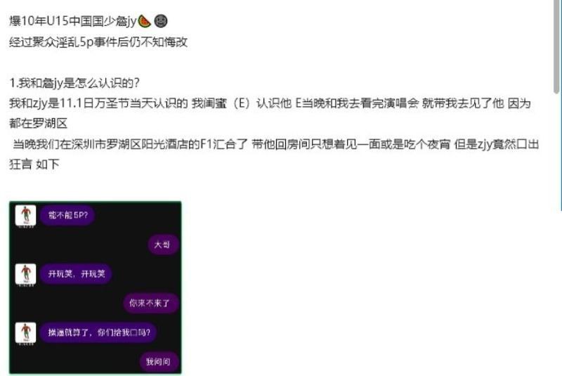 中国U15国少队球员 詹景源 酒店聚众淫乱 与未成年人5P 出轨32岁空姐 大量视图曝光实锤!
