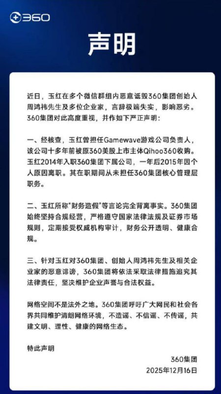 360集团内部爆出财务造假指控,财务人员玉红指称董事长周鸿炜涉及做假账
