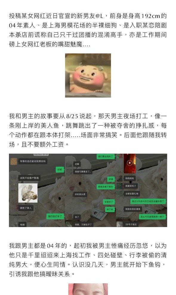 抖音上粉丝破80万的女网红小宋芋头,最近高调官宣了新男友程南。这个程南可不简单,04年出生,身高192cm的素人男神,转眼间摇身一变,成为了不染世俗的富二代。两人从相识到热恋,甜蜜得像偶像剧,可谁知这背后藏着层层秘密。原来程南之前混迹上海男模花场,当过半裸细狗,还入职某恋陪剧本杀店,前脚谎称只干过团播,后脚就成了工作期间磅上女网红老板的嘴甜魅魔。恋爱期间,他同时脚踏多条船,出轨视频被曝,这悬念才刚开始呢。